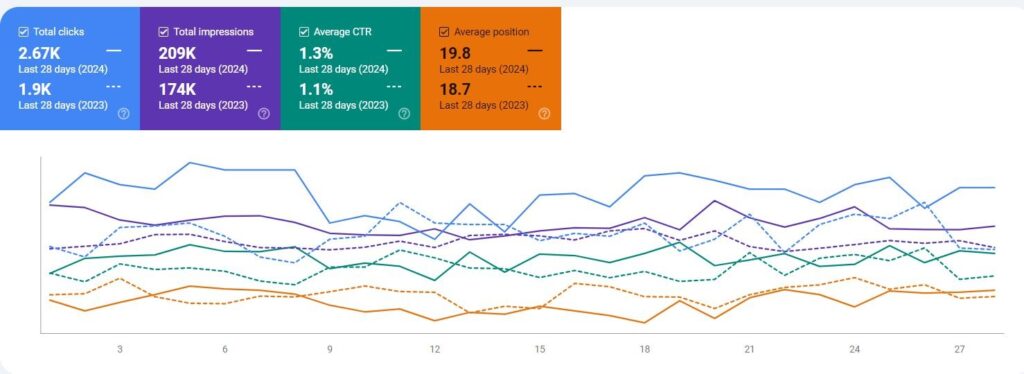 Significant increase in website organic impressions and clicks and improvements in organic rankings.